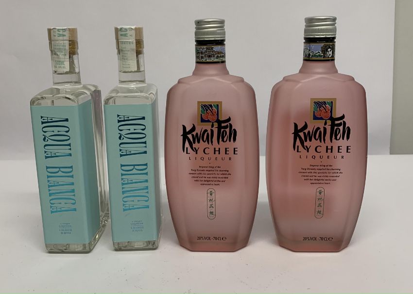 Two Acqua Bianco Liqueur 2 x 500ml and two Kwai Feh Lychee Liqueur 2 x 700ml.