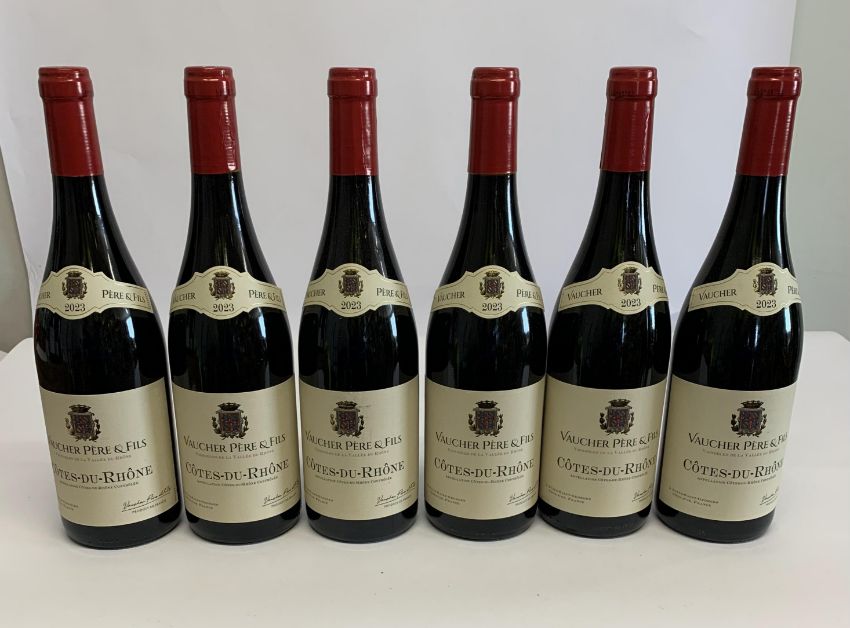 Six Vaucher Pere & Fils 2023 Cotes Du Rhone red wine 6 x 750ml.