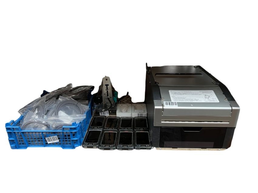 Assorted items to include: DNP OP-TU80X Duplex Unit for DNP Photo Printer, SNBC BK-T680 80mm Thermal Printer, 2 x pre-owned Denso QK30-U USB Barcode Readers, 38 x as new Zebra CAB-2208-UNS2 Cables, 8 x pre-owned Honeywell Dolphin 70e Handheld Terminals.