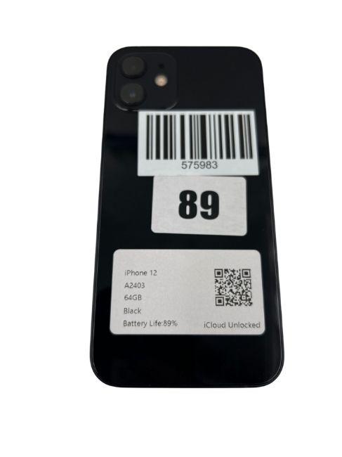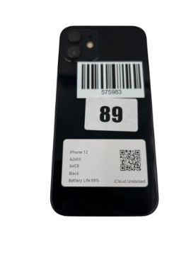 Pre-owned Apple iPhone 12 A2403 64GB in Black (iCloud unlocked. Battery health: 89%) (Checkmend report available on request).