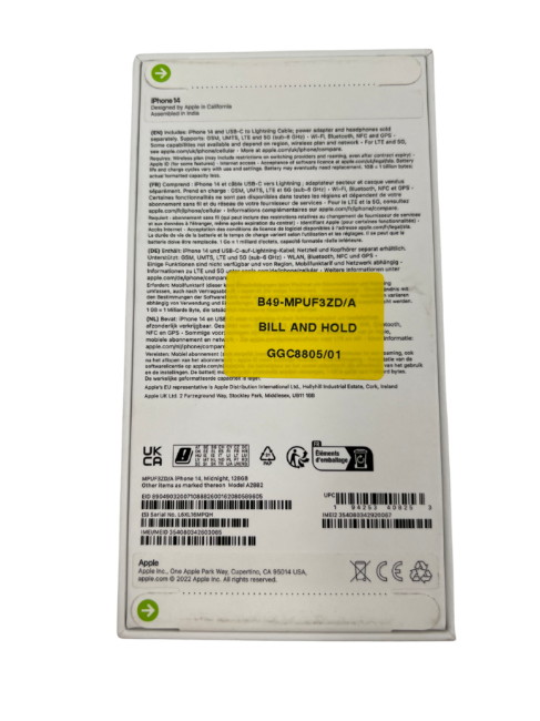 As new Apple iPhone 14 (A2882) 128GB in Midnight (Box sealed) (EAN: 194253408253) (Checkmend report on request).