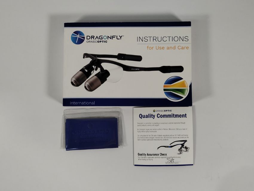 A pair of Orascoptic dental loupes, HDL 3.5 Through the Lens Dragonfly Neo (GEN 2), Small, Midnight (Manufacture date: 25/02/14).