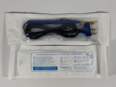 A box of fifty as new Timesco Disposable Pencil Finger Switch STD Electrode, DS.8050.100.50 (EXP: 2027/11/01).