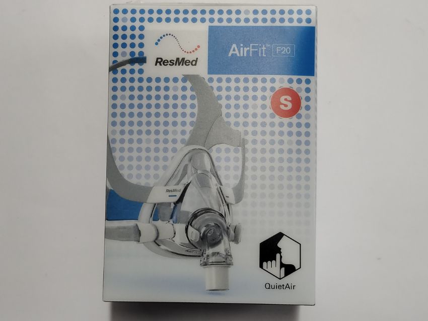 An as new ResMed AirFit F20 full face mask for sleep apnoea, small (REF: 64005, EAN: 619498640058).