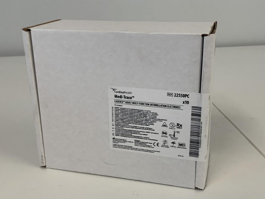 As new Cardinal Health Medi-Trace Cadence Adult Multi-Function Defibrillation Electrodes (REF: 22550PC, EXP: 2026-03-26).