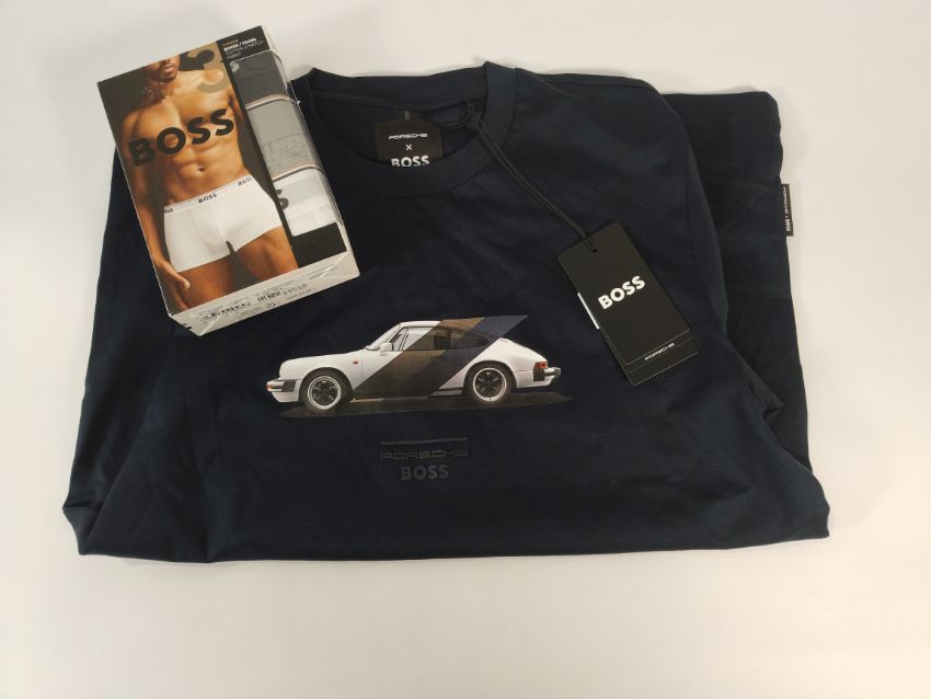 Hugo Boss x Porsch medium t-shirt together with Hugo Boss large boxers set.