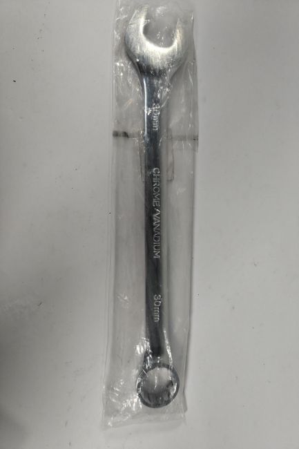 Six spanner wrench tool related items; Snap On 12-14mm ring, Mac Tools 13- 3mm open/ring, Expert 13-13mm open/ring ratchet, RS PRO 30-30mm open/ring and two Bluepoint 3/4 - 3/4mm open/ring spanner.