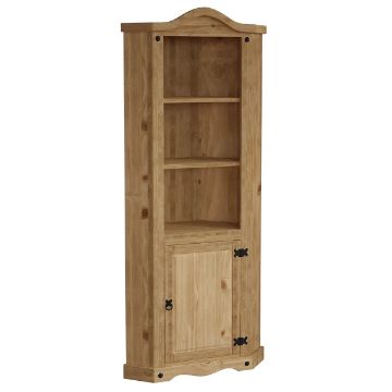 Vida Designs Corona solid pine, 1 door corner bookcase, (H)1780mm (W)750mm (D)370mm (stock image).