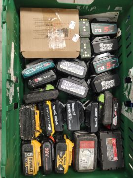 Twenty five pre-owned power tool batteries to include Dewalt, Milwauke, Hilti and Makita.