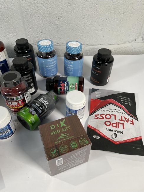 Approximately thirty seven assorted supplements and vitamins to include Potassium Citrate, Spermidine, Shilajit, Ashwagandha, NAD and more! (over 18s only).