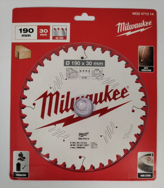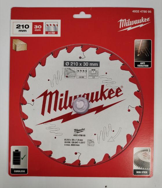 Five assorted as new Milwaukee circular blades - wood cutting discs, two 216 x 30 X 2.4mm 48HW (4932471316), one 216 x 30 x 2.4mm 24HW (4932471315), one 210 x 30 x 1.9mm 24HW (4932478095) and a 190 x 30 x 2.4mm 40HW (4932471314).