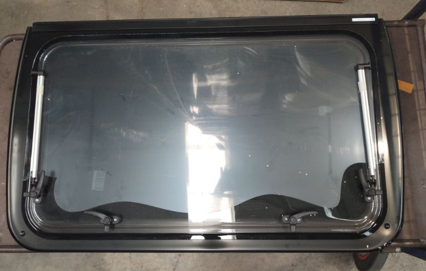 Dometic Caravan dark grey windowpane, 900 x 520 with arms and catches. (9104117458)