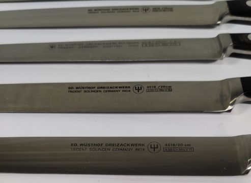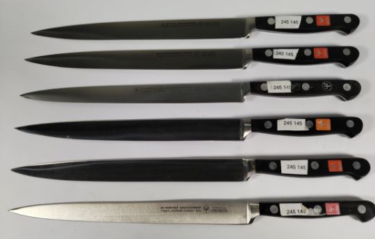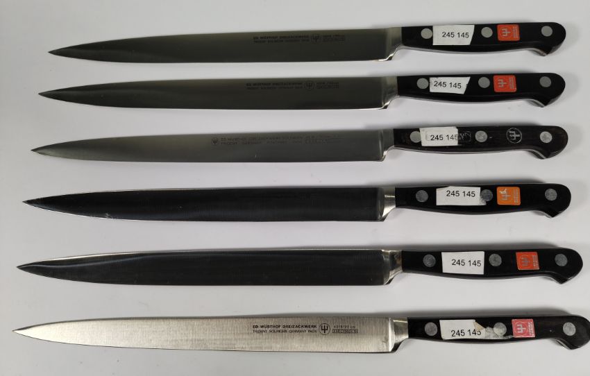 Six Wusthof narrow slicer bolstered knives, 200mm/20cm/8" (4518) (over 18s only).