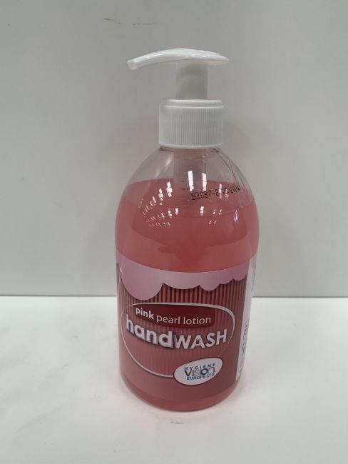 A pallet of Hygiene Vision pink pearl lotion handwash, 500ml (NOTE: these items have past their expiration date).