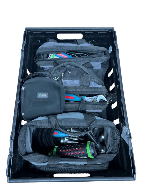 Three pre-owned Kaelus PIL-0001A PIM Testers with accessories and a Kaelus RTF-2000A Ranger RTF Module.