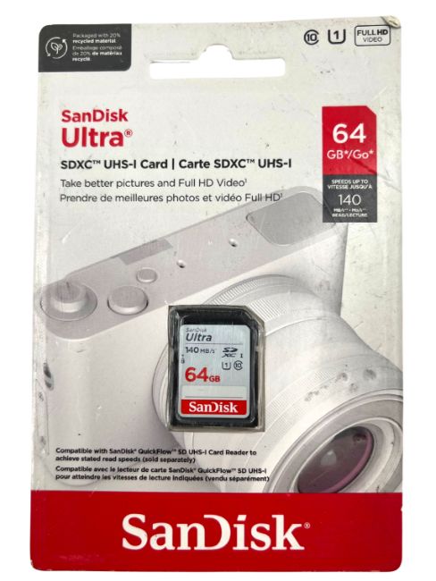 Five as new SanDisk Ultra 64GB SDXC UHS-I Card Memory Cards (Some damage to packaging).
