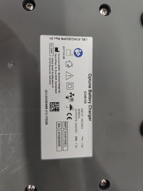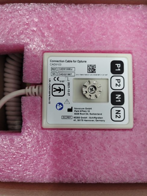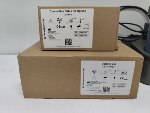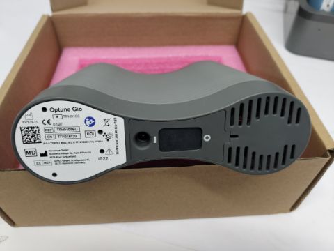 A pre-owned Optune GIO tumour treating fields system to slow glioblastoma growth. Lot includes the generator, charger and power supply, a battery and connection cable (REF: TFH9100).