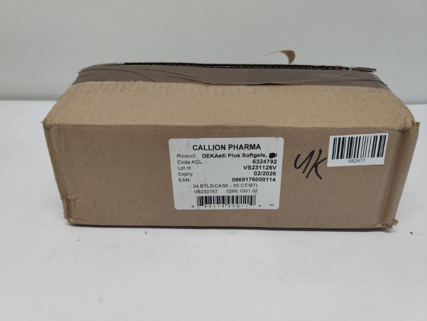 Twenty four as new bottles of DEKAs Plus softgels (food for special medical purposes) for the dietary management for patients with cystic fibrosis, 60 soft gels per bottle (REF: 0868176000114, EXP: 02/2026).