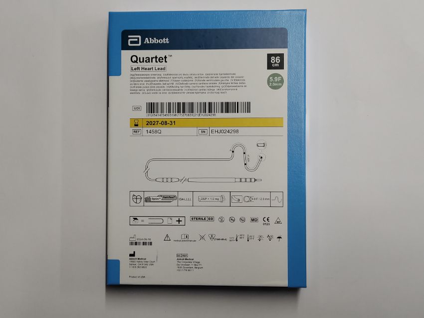 An as new Abbott Medical Quartet Left Heart Lead, 86cm, 5.9F/2.0mm (REF: 1458Q, EXP: 2027/08/31).