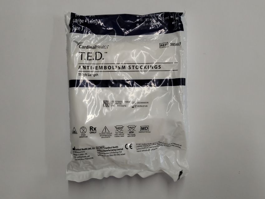 Thirty six as new Cardinal Health T.E.D Anti-Embolism Stockings, Large, Long, Size J (REF: 3856LF, Use By: 2028-07-25).