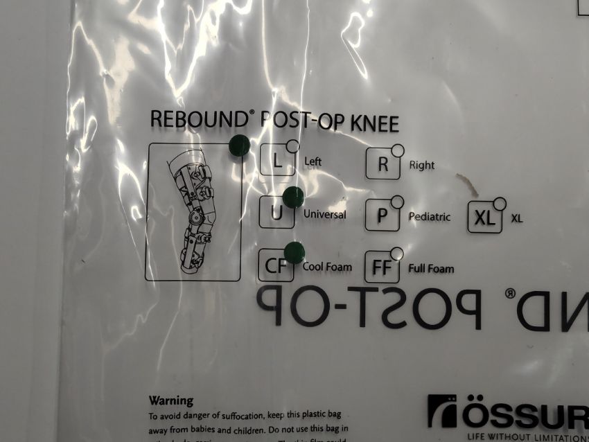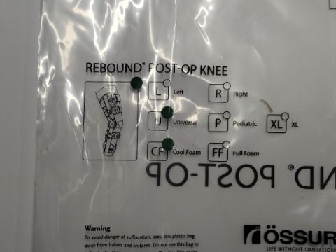 Five as new Ossur Rebound Post-OP Knee Support, Cool Foam, Universal (REF: B-8381480).