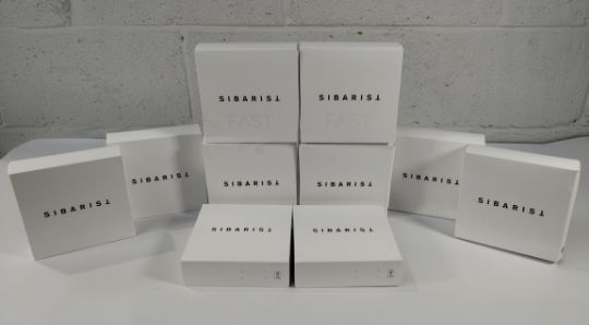 Thirty packs of Sibarist Fast specialty coffee cone filters - medium, some slight creases to outer packaging (100 per pack).