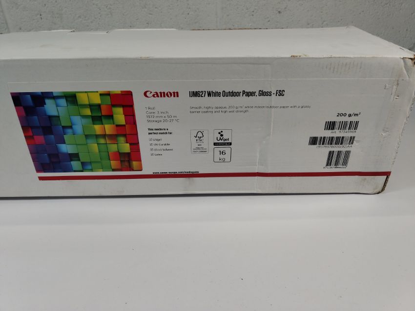 Canon IJM627 White Outdoor Paper, gloss (FSC) 200g/m² (97345969), 1372mm x 50m roll.