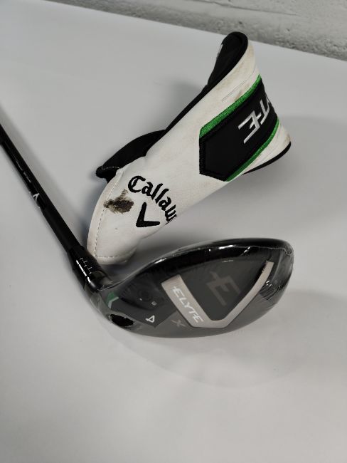 An as new Callaway Elite X Hybrid golf club 4, 21 degree, RH with a Vanquish 5/R2 shaft (some minor damage to head cover).