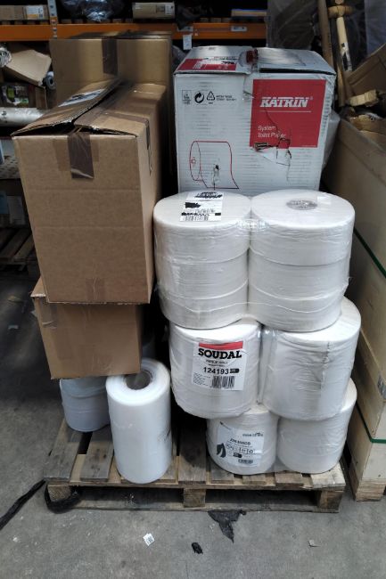 A quantity of assorted blue roll, toilet roll and related.