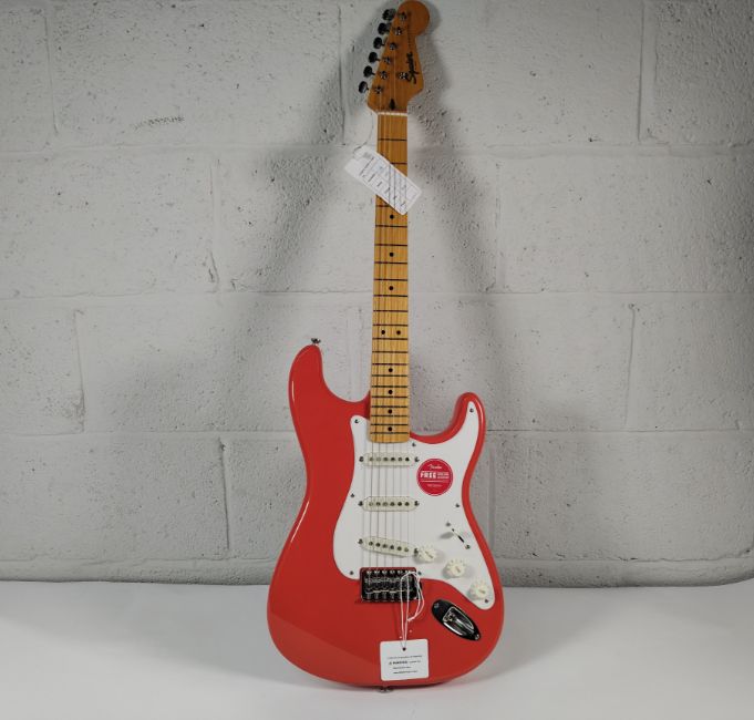 A Squier Classic Vibe 50s Stratocaster in Fiesta Red.