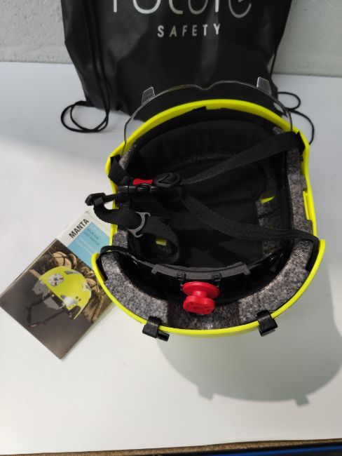 Twenty as new with tags Manta MH 2/3 multi-role SAR safety helmets - 4 point chin strap mechanism with built in safety visors, conforms with EN12492:2012 mountaineering - PAS028:2002 marine safety and FS/ATV1 quad & ATV, weight per helmet 606g, shell thickness 3-6mm, liner thickness 18-22mm.