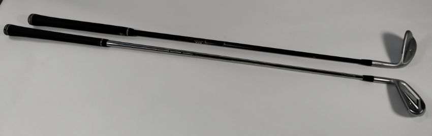 Two pre-owned Mizuno golf clubs - a Mizuno T24 56 12S, R/H with Mitsubishi Chemical shaft with Golf Pride grip and a Mizuno JPX 7 L/H with Nippon shaft flex R with Golf Pride grip.