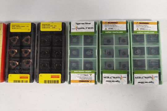 Ten packs of assorted CNC machinery turning cutting tips - Sandvik and Walter.