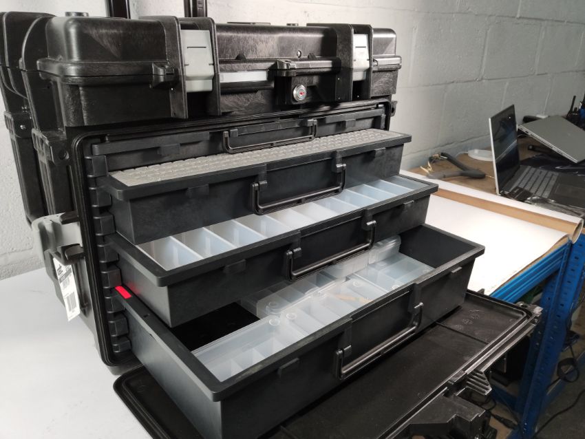 A GT LINE polypropylene tool trolley, four drawers.