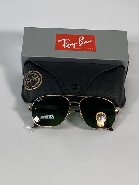 A pair of Ray-Bans Pilot sunglasses in polished gold and G-15 green lenses (RB4648).