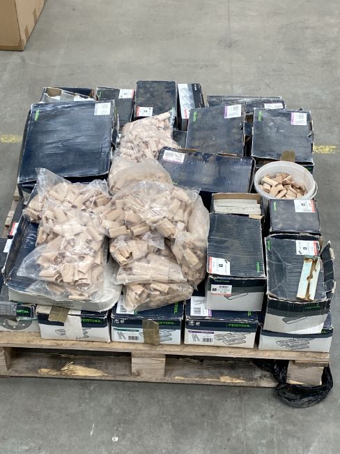 A quantity of part used Festool consumables to include sanding pads, Dominos and related.