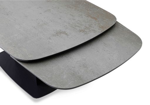 Large Extending Dining Table RRP £1495. 170-250W x 95D x 76H cm. Stunning urban style, superb craftsmanship. Extending dining table with asymmetric base is the ultimate dining room centrepiece. Sleek boat-shaped top in beautiful Spanish ceramic. The ceramic is bonded to tempered glass for extra durability. Ceramic is scratch-resistant, chip-resistant, heat-resistant and so easy to clean. Ergonomic pedestal base makes it easier to seat more guests. Extends easily to seat 10. Extra leaves slide out from the table ends. Ceramic pattern on extension leaves matches the table top, a sign of real quality. See Product on Official Website