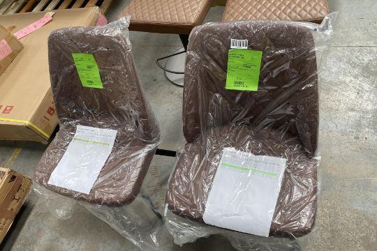 Two x Faux Leather Swivel Dining Chairs in Tan. RRP £400. 49W x 60D x 87H cm. Transform your dining room with a set of six stylish swivel-base dining chairs. Beautifully upholstered in faux leather. These ultra-comfy dining chairs even have swivel bases. Soft faux leather upholstery in a choice of colours. Slender black metal legs. See Product on Official Website