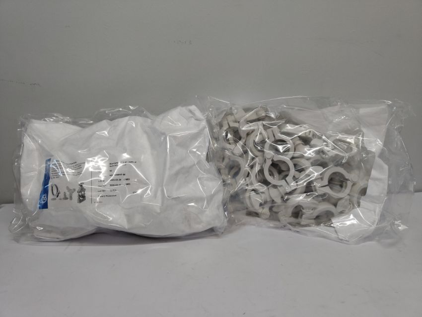 Two bags of as new Bio Pure Bioclamps, 1"-1.5" (50 per bag, REF: NG150WHT, EXP: 2030-03-27).