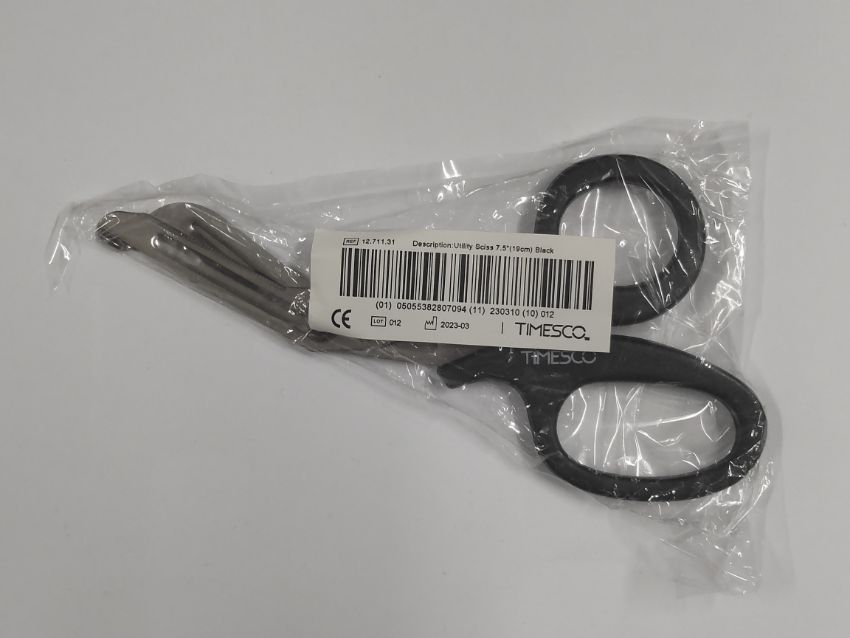 Two packs of as new Timesco Utility Scissors 7.5" (19cm), Black, ten pairs per pack (REF:12.711.31).