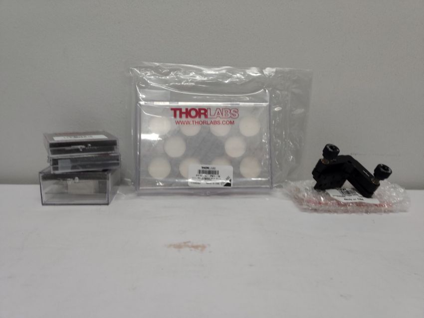 Five as new Thorlabs products to include: 1x 1" Polarizing Beamsplitter Cube, 420 - 680 nm (PBS251), 1x Ø1" Longpass Dichroic Mirror, 650 nm Cut-On (DMLP650), 1x Ø1" Shortpass Dichroic Mirror, 550 nm Cutoff (DMSP550), 1x Kinematic Prism Mount, 25.4 mm Deep, M4 Taps (KM100PM/M) and 1x Ø1" Protected Silver Mirror, 10 Pack (PF10-03-P01-10).