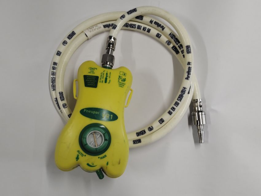Six pre-owned Smiths Medical Pneupac VR1 Portable Mechanical Ventilator with Hose (REF: 520A1125).