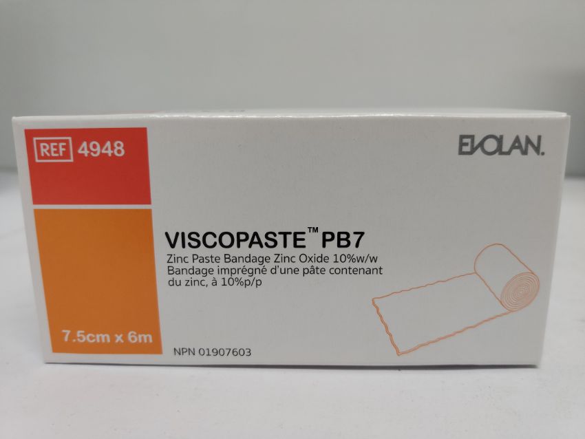 Four as new boxes of Evolan Viscopaste PB7, 7.5cm x 6m per roll (12 rolls per box, REF: 4948, EXP: 2027-06-01).