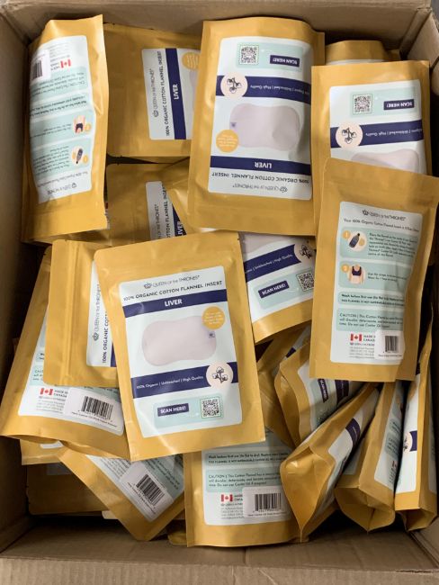 Approximately one hundred packs of as new Organic Cotton Castor Oil Pack Insert for Liver, 100% Organic Cotton Flannel Insert.