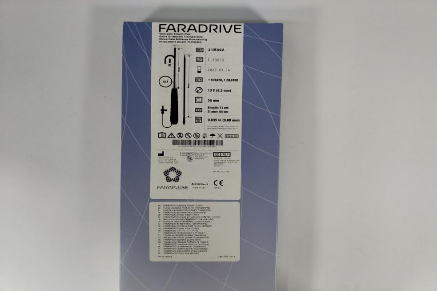 An as new Faradrive Steerable Sheath Clear, 1 Sheath, 1 Dilator, 13F (4.3mm), 35mm (REF: 21M402, EXP: 2027/01/24).