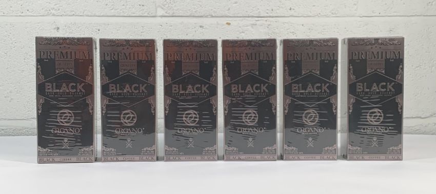 Six boxes of Premium Organo Black Edition Gourmet Instant Black coffee with Ganoderma Lucidum (30 sachets per box).