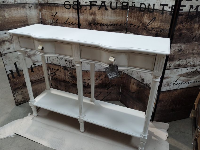 An Amadeus Agathe Drapier Console 2T/1N KD, white (has some damage and is missing some hardware (4 screws)).