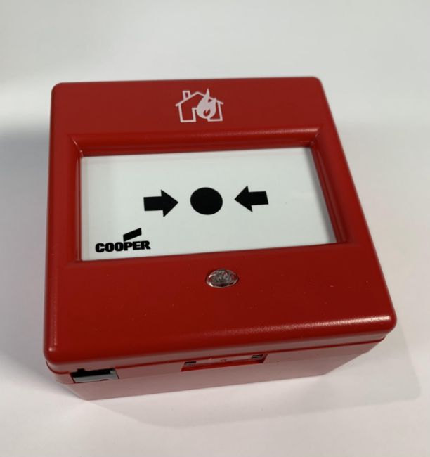 Seven Eaton Cooper intelligent addressable manual call points, red, boxed (CBG370S).