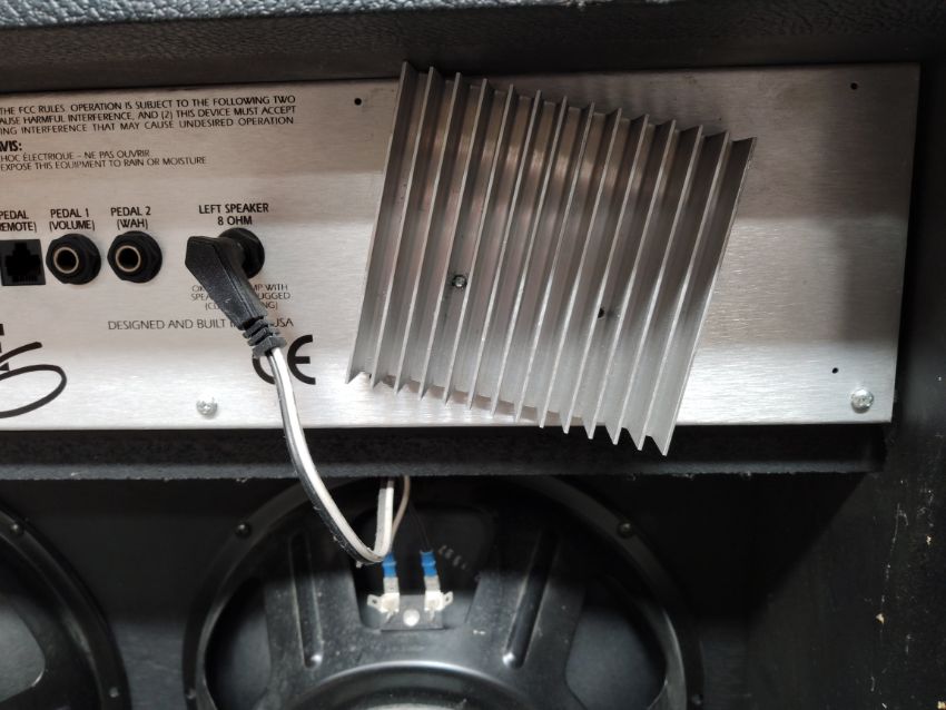 A pre-owned Line 6 AX2 212 guitar amp with some minor damage.