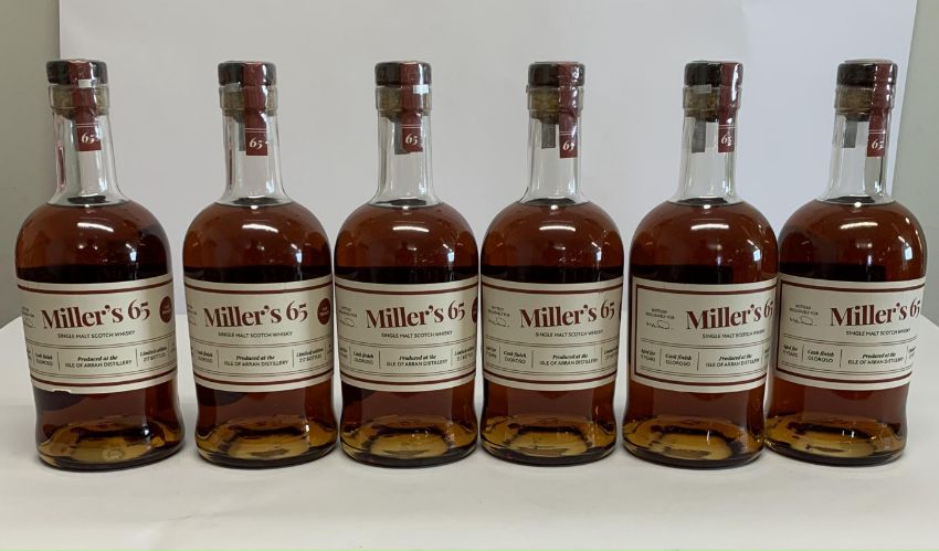 Six Miller's 65 Single Malt Scotch Whiskies Aged for 11 years, cask finish Oloroso, produced at the Arran Distillery, Limited Edition of 217 bottles, 6 x 700ml.